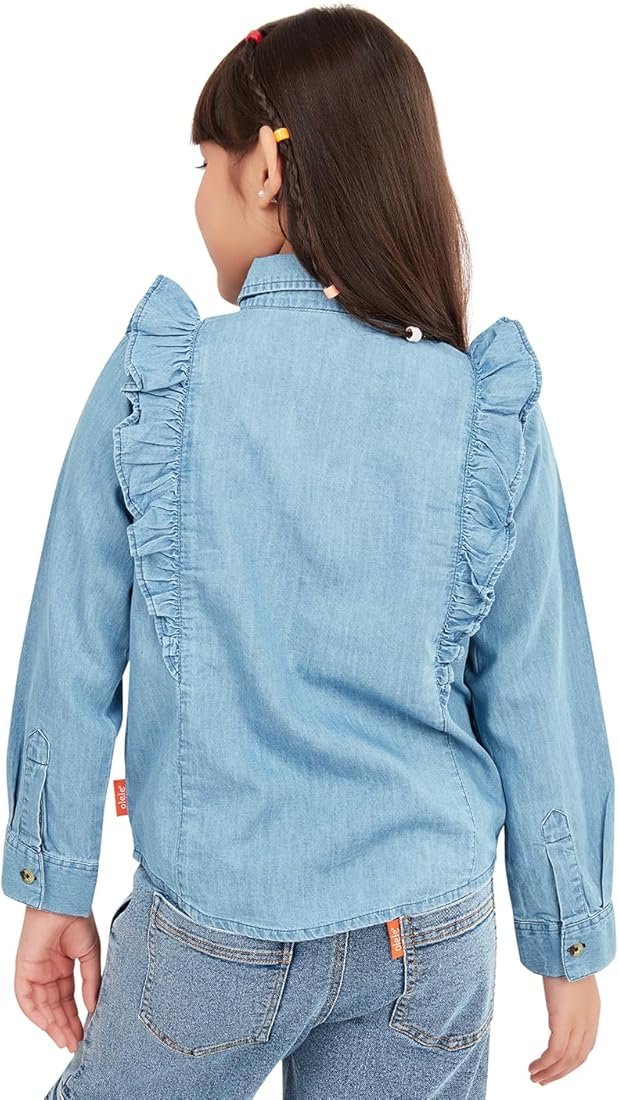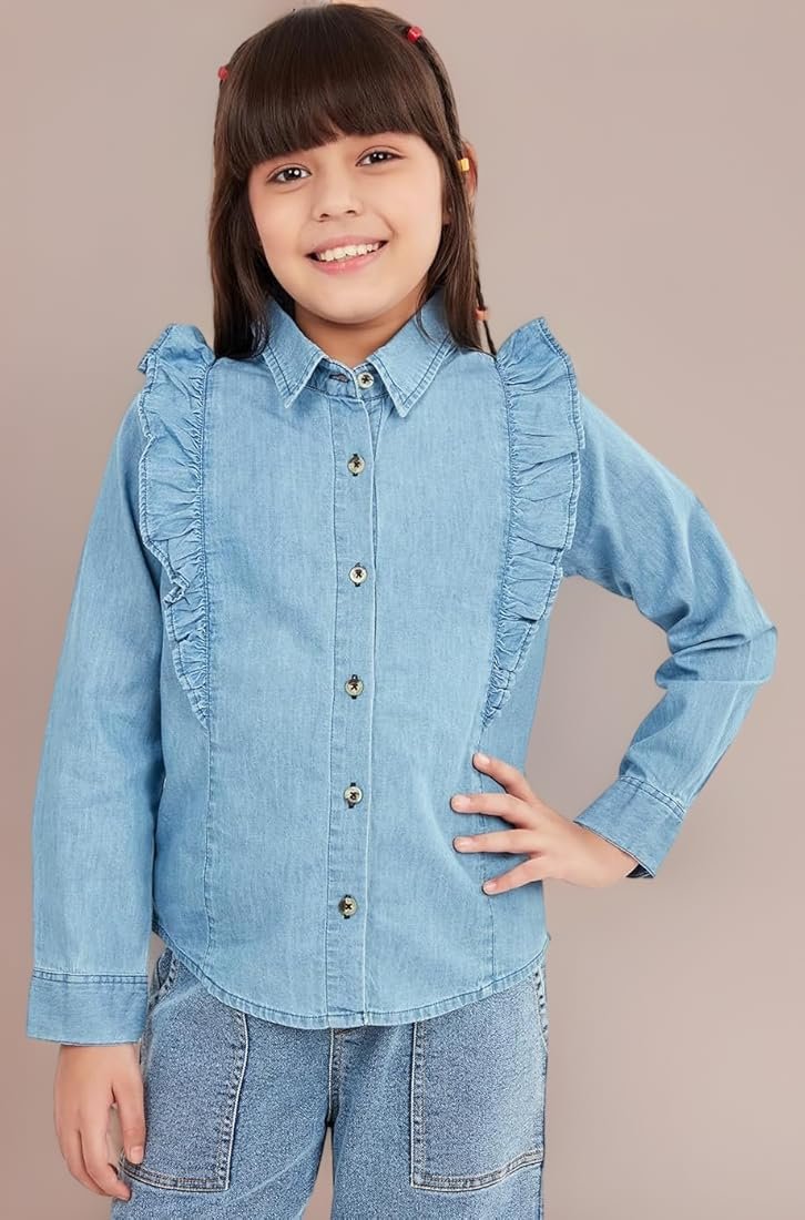 • o Design Details: Prominent vertical Ruffle detailing running down the front shoulder/yoke seam, adding a feminine touch.