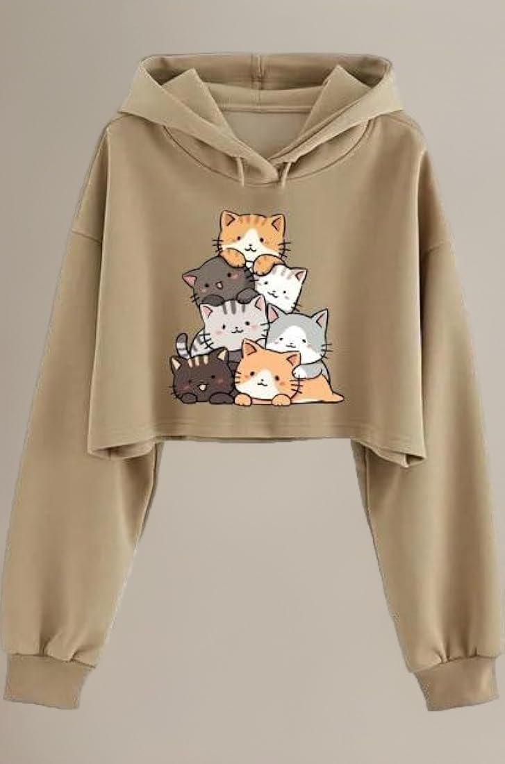 • o Style: Cropped length, oversized fit, long sleeves, attached hood with drawstring (possible), and ribbed cuffs/hem.